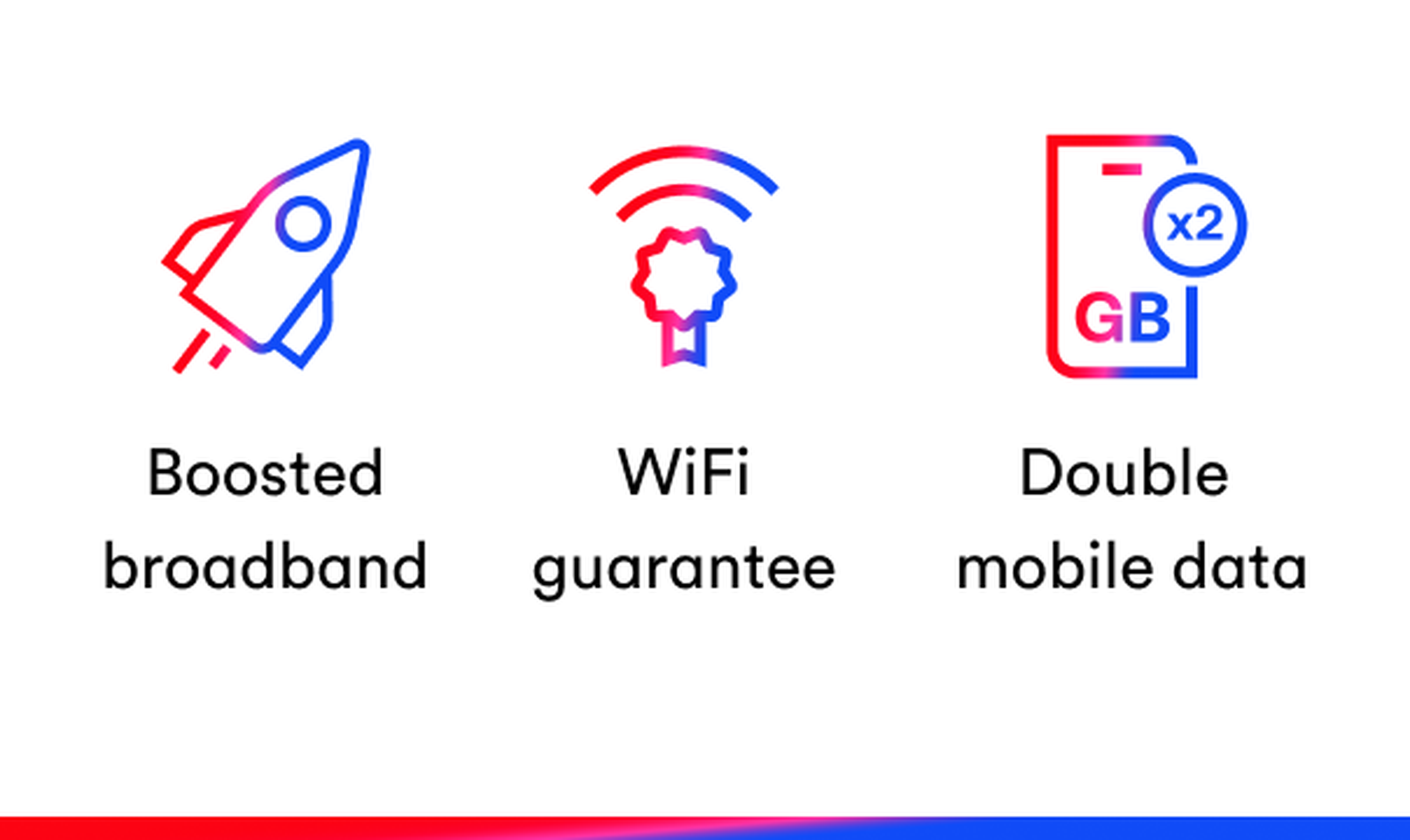 Volt packages and our fastest gigabit broadband deals promise WiFi speeds in every room, or £100 back. By comparison, you’d need to add this WiFi guarantee to all our other deals, at an extra cost. Volt broadband deals also have even bigger benefits included at no extra cost – a speed boost, double mobile data, and more! – which could give you more value for money compared to the rest of our broadband packages.
