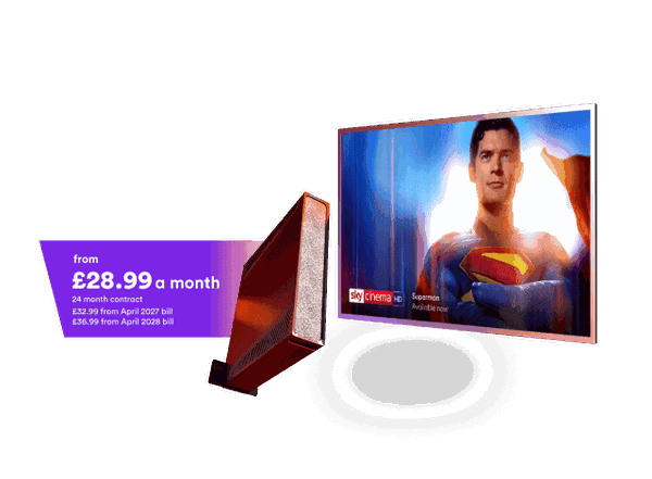 Sport + Cinema Volt: Mega TV, Sky Cinema and Sky Sports (both in HD), Gig1 Fibre Broadband (average download speed at peak 1130Mbps), a 10GB data SIM and Netflix Standard with ads. Home Phone can be added from an extra £8 per month. If you cancel your service during your minimum term an early disconnection fee will apply. Netflix Standard with ads included at no extra cost. If you decide not to activate Netflix Standard with ads, this will not reduce or amend the price of your eligible bundle. Currently £70.99* a month for 24 months. 24 month minimum term. Alternative broadband speeds available, prices vary depending on speed chosen. Additional Terms and Conditions apply. Inclusion of Netflix at no extra cost based on non-boosted broadband speed chosen. Downgrading a service in your bundle may result in loss of bundle discount or ineligibility to receive Netflix at no extra cost. Includes O2 mobile SIM with unlimited minutes, texts and data. 5G available in selected areas. 5G device, sim and tariff required to access 5G. See o2.co.uk/coveragechecker for coverage. Europe Zone roaming capped at 25GB per month, chargeable at £3.50 per GB afterwards Premium add-ons are available at extra monthly cost. If you cancel your service during your minimum term an early disconnection fee may apply. Downgrading a service in your bundle may result in loss of bundle discount. If you upgrade any aspect of the service, standard pricing will apply to that upgrade. Virgin Media reserves the right to withdraw or amend the pricing if you change any part of your package. Virgin Media reserves the right to withdraw this offer at any time. Offer may not be used in conjunction with any other offer unless stated by Virgin Media.